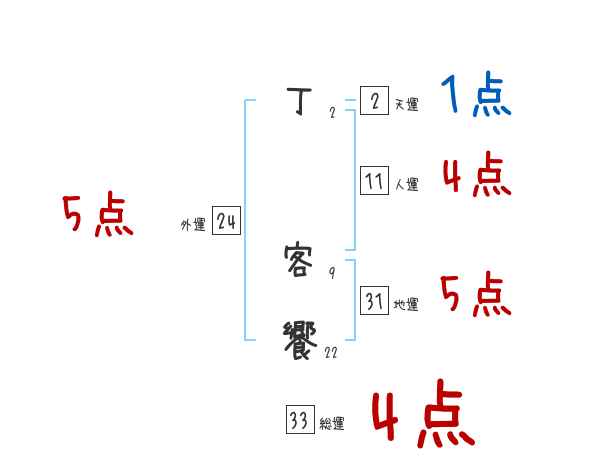 丁客饗さんの画数の鑑定結果