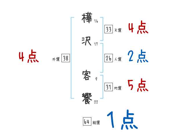 樺沢客饗さんの画数の鑑定結果