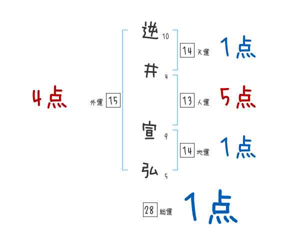 天運![]() | 逆井宣弘さんの天運は14画の1つ星!人に対して優しいがストレスを溜め込みがち。人間関係のトラブルを避けるよう気をつけましょう。 家系が持つ宿命的な運勢を表します。祖先から受け継いだ苗字ですので自分の力が及びません。家柄を象徴します。 |