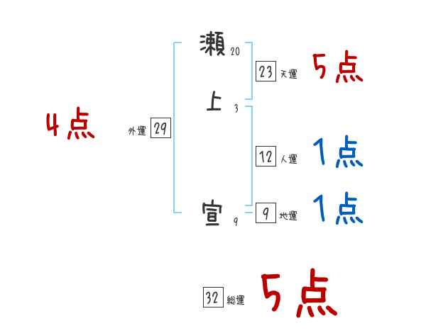 瀬上宣さんの画数の鑑定結果