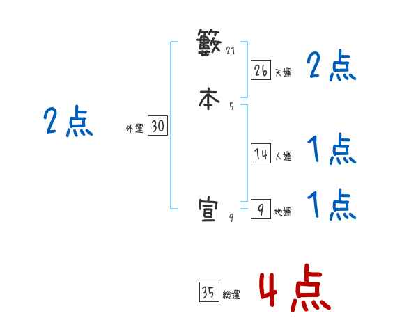 籔本宣さんの画数の鑑定結果