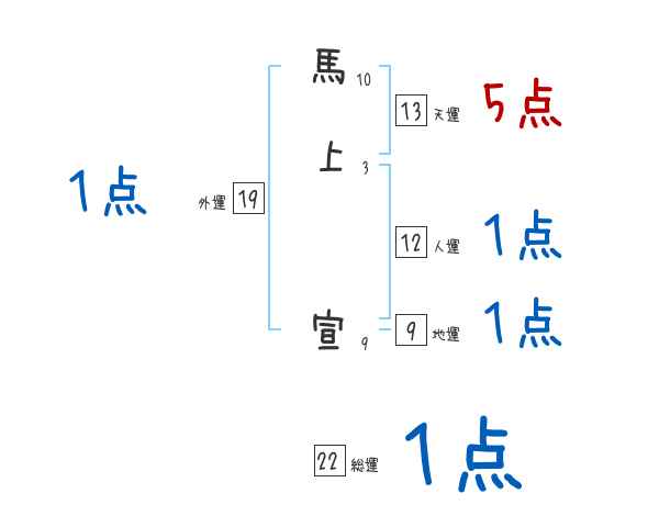 馬上宣さんの画数の鑑定結果