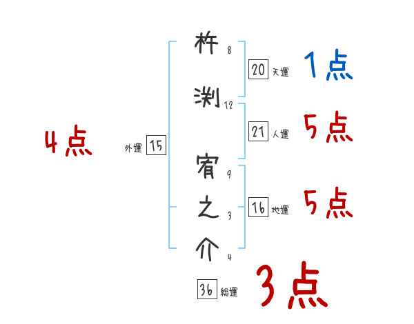 総運![]() | 杵渕宥之介さんの総運は36画の3つ星!先見性が豊かです。多少神経質で苦労することも。 あなたの人生を表す1番重要な運勢です。生涯を通じて影響する総合運となり、主に50歳以降の晩年期に影響を及ぼします。 |