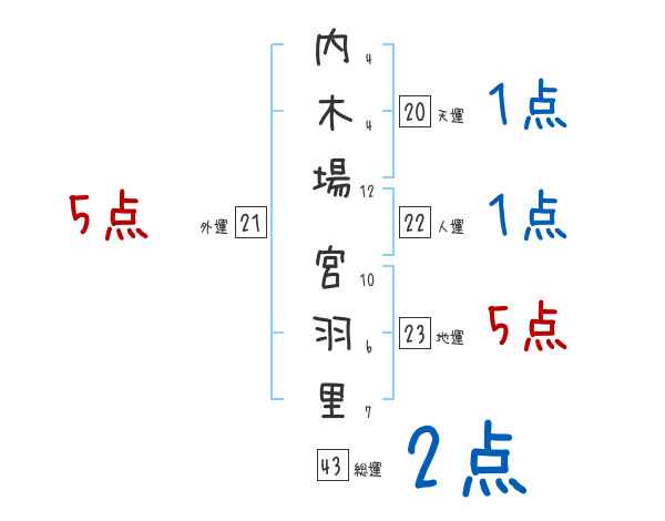 外運![]() | 内木場宮羽里さんの外運は21画の5つ星!統率力がある。独立し成功する。名誉を手に入れる。 生活面を象徴する運勢です。外部から受ける影響力を表し、結婚運、家庭運や職場、環境への順応性を表します。 |