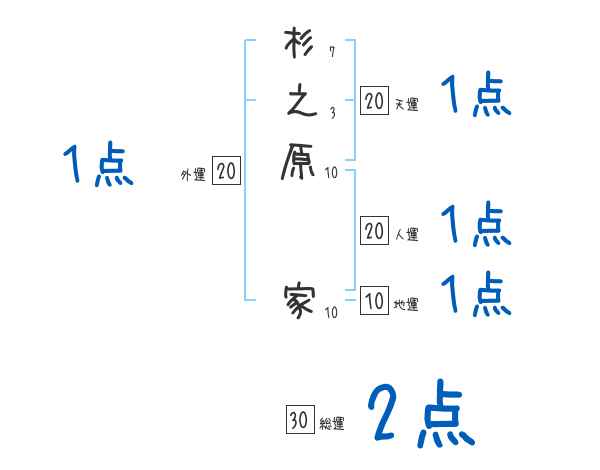 杉之原家さんの画数の鑑定結果