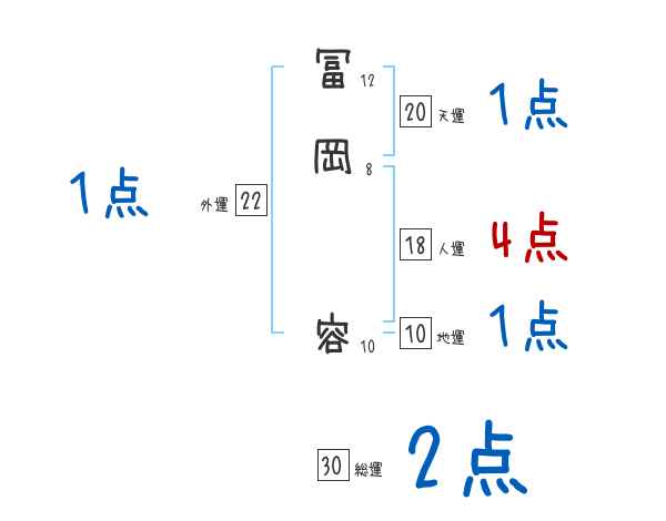 外運![]() | 冨岡容さんの外運は22画の1つ星!努力することが苦手ないっぽう手先が器用。芸術性にも優れる。 生活面を象徴する運勢です。外部から受ける影響力を表し、結婚運、家庭運や職場、環境への順応性を表します。 |
