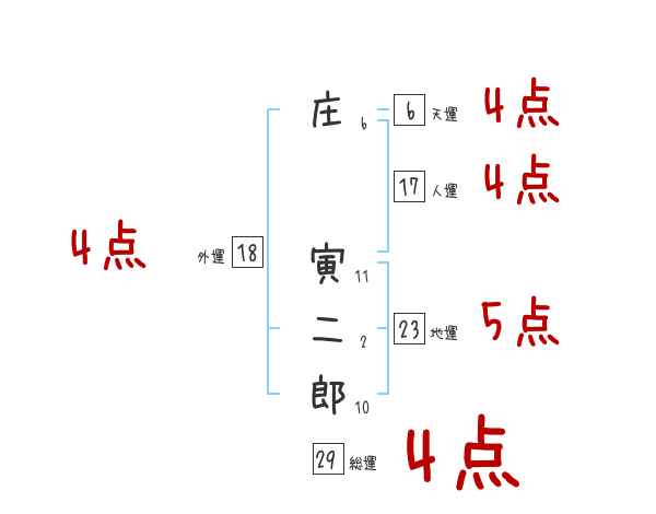 庄寅二郎さんの画数の鑑定結果