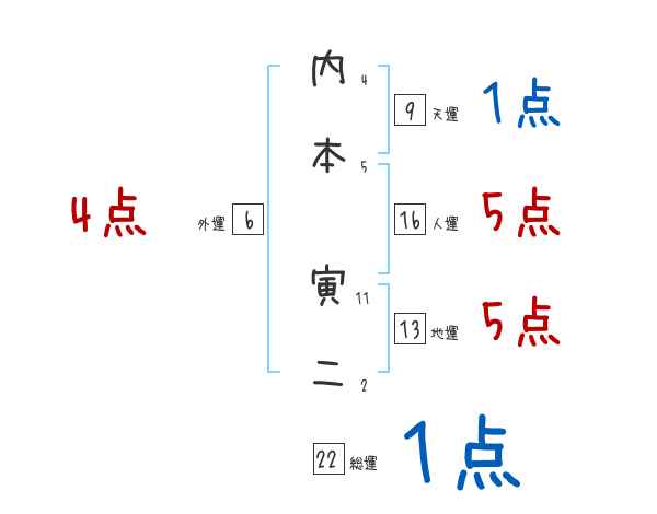 内本寅二さんの画数の鑑定結果