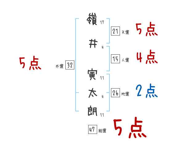 嶺井寅太朗さんの画数の鑑定結果