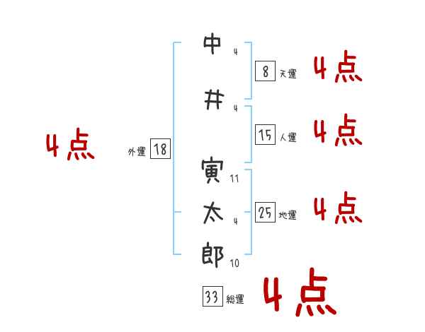 中井寅太郎さんの画数の鑑定結果