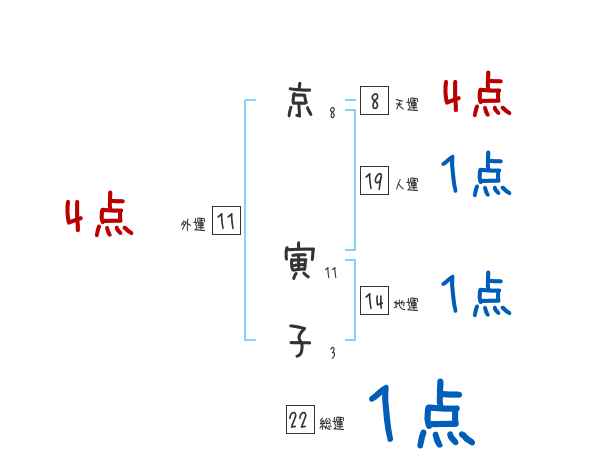 総運![]() | 京寅子さんの総運は22画の1つ星!努力することが苦手ないっぽう手先が器用。芸術性にも優れる。 あなたの人生を表す1番重要な運勢です。生涯を通じて影響する総合運となり、主に50歳以降の晩年期に影響を及ぼします。 |
