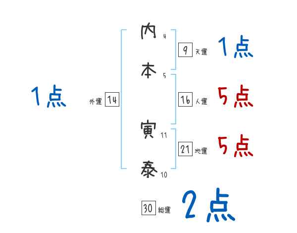 内本寅泰さんの画数の鑑定結果