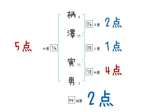 柄澤寅男さんの画数の鑑定結果