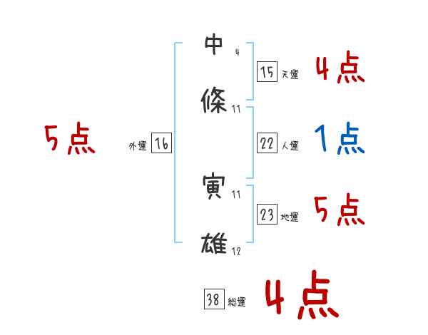 総運![]() | 中條寅雄さんの総運は38画の4つ星!温厚な性格で技術的な才能を発揮する。職人的な仕事に向いている。 あなたの人生を表す1番重要な運勢です。生涯を通じて影響する総合運となり、主に50歳以降の晩年期に影響を及ぼします。 |