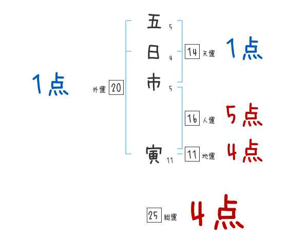 人運![]() | 五日市寅さんの人運は16画の5つ星!人望が厚く大きく発展する。逆転成功が見える。 性格や才能などを表す2番目に重要な運勢です。人間関係や協調性、社会的な成功に影響します。主に20歳から50歳ぐらいまでの中年期の運勢を表します。 |