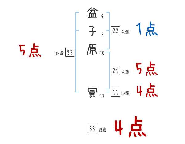 盆子原寅さんの画数の鑑定結果