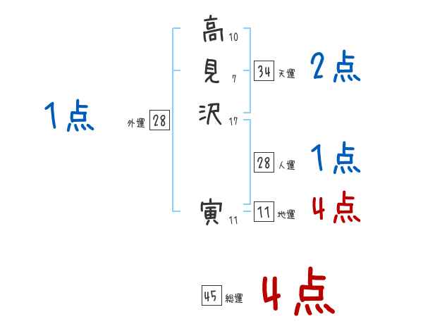 高見沢寅さんの画数の鑑定結果