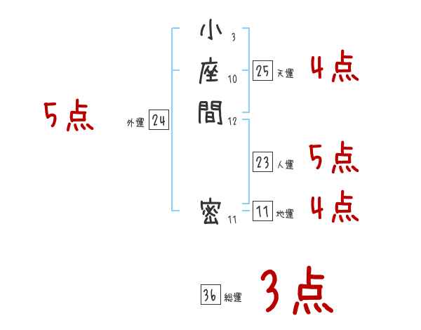 小座間密さんの画数の鑑定結果