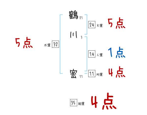 鶴川密さんの画数の鑑定結果