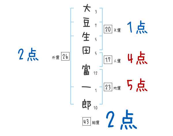 大豆生田富一郎さんの画数の鑑定結果