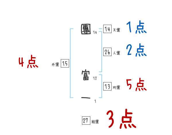 天運![]() | 團富一さんの天運は14画の1つ星!人に対して優しいがストレスを溜め込みがち。人間関係のトラブルを避けるよう気をつけましょう。 家系が持つ宿命的な運勢を表します。祖先から受け継いだ苗字ですので自分の力が及びません。家柄を象徴します。 |