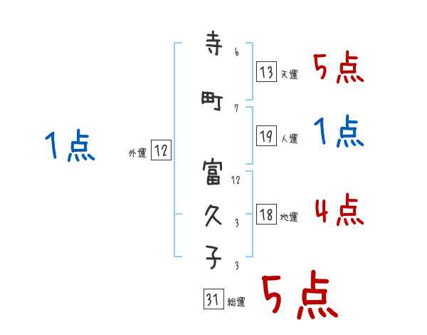寺町富久子さんの画数の鑑定結果