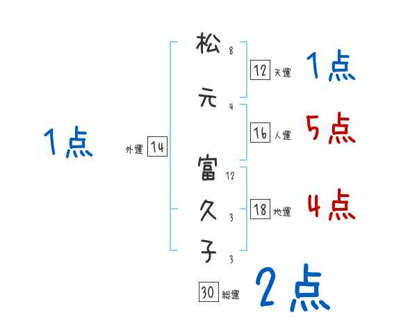 松元富久子さんの画数の鑑定結果