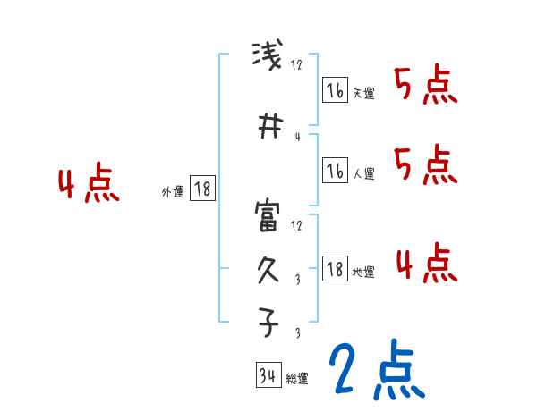 浅井富久子さんの画数の鑑定結果