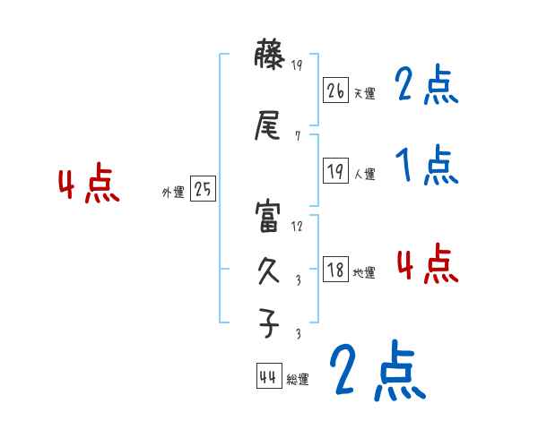 藤尾富久子さんの画数の鑑定結果