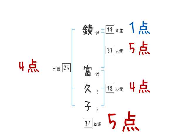 鏡富久子さんの画数の鑑定結果