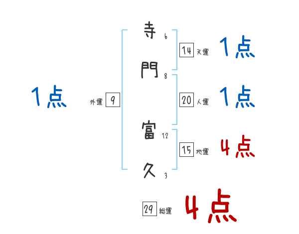 寺門富久さんの画数の鑑定結果