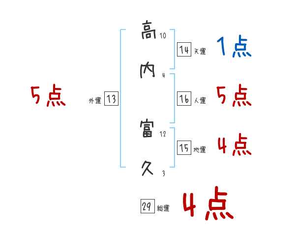 高内富久さんの画数の鑑定結果