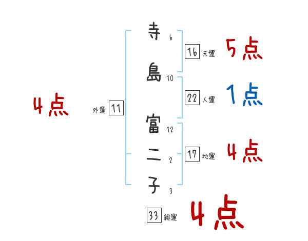 寺島富二子さんの画数の鑑定結果