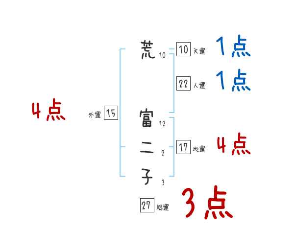 荒富二子さんの画数の鑑定結果