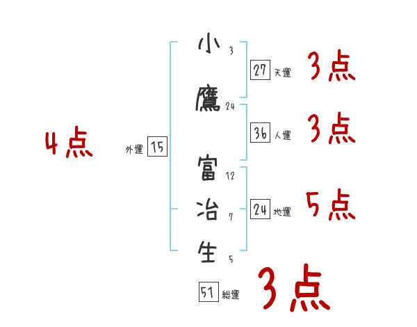 小鷹富冶生さんの画数の鑑定結果