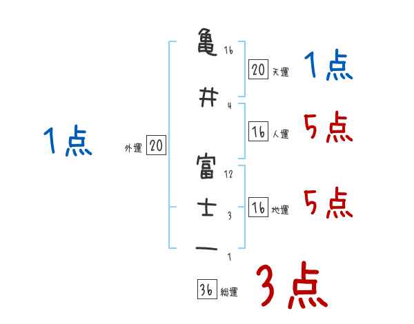 総運![]() | 亀井富士一さんの総運は36画の3つ星!先見性が豊かです。多少神経質で苦労することも。 あなたの人生を表す1番重要な運勢です。生涯を通じて影響する総合運となり、主に50歳以降の晩年期に影響を及ぼします。 |