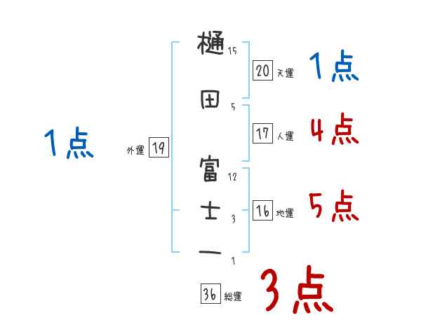 外運![]() | 樋田富士一さんの外運は19画の1つ星!優れた才能を持ちますが、協調性が足りないことも。周りの人と協力する事を意識しましょう。 生活面を象徴する運勢です。外部から受ける影響力を表し、結婚運、家庭運や職場、環境への順応性を表します。 |