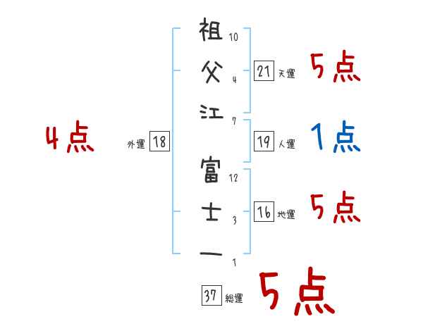 祖父江富士一さんの画数の鑑定結果