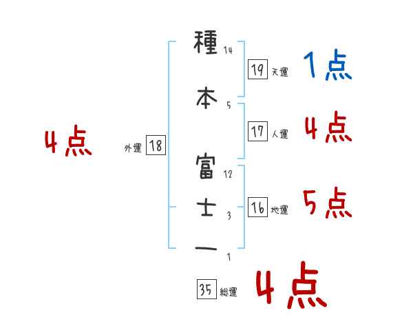 地運![]() | 種本富士一さんの地運は16画の5つ星!人望が厚く大きく発展する。逆転成功が見える。 個性を表す基礎的な運勢です。性格形成や対人関係、行動力など家庭環境に影響されます。主に誕生してから20歳くらいまでの若年期の運勢を表します。 |