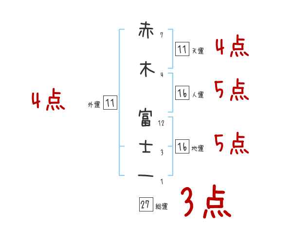 赤木富士一さんの画数の鑑定結果