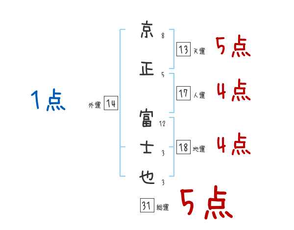 天運![]() | 京正富士也さんの天運は13画の5つ星!才能に恵まれ人気がある。名声を手に入れる。円満な人生。 家系が持つ宿命的な運勢を表します。祖先から受け継いだ苗字ですので自分の力が及びません。家柄を象徴します。 |
