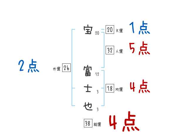 宝富士也さんの画数の鑑定結果