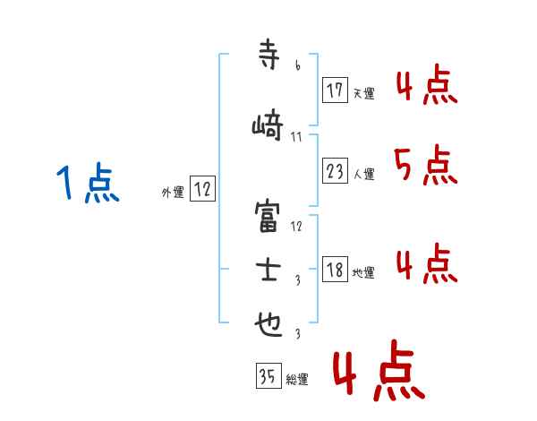 天運![]() | 寺﨑富士也さんの天運は17画の4つ星!積極的な行動力。地位を気づき財産を手に入れる。純粋な心と直感力。 家系が持つ宿命的な運勢を表します。祖先から受け継いだ苗字ですので自分の力が及びません。家柄を象徴します。 |