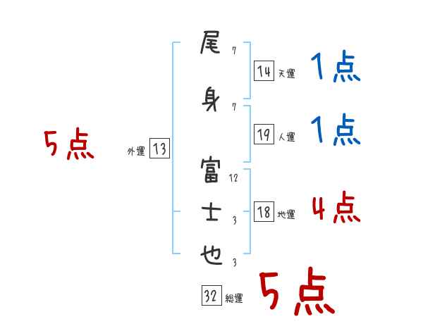 尾身富士也さんの画数の鑑定結果