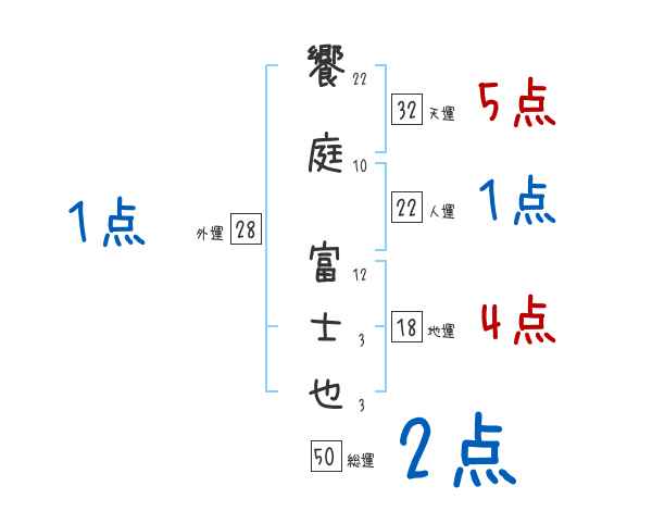 饗庭富士也さんの画数の鑑定結果