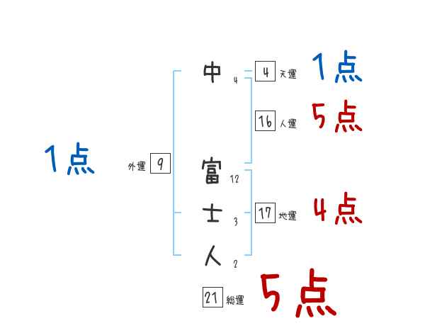 天運![]() | 中富士人さんの天運は4画の1つ星!感情が不安定で苦労するかも。周囲との協調を心掛けましょう。 家系が持つ宿命的な運勢を表します。祖先から受け継いだ苗字ですので自分の力が及びません。家柄を象徴します。 |
