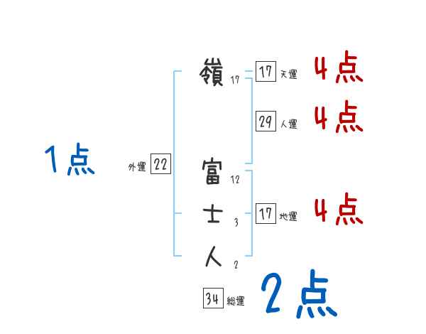嶺富士人さんの画数の鑑定結果