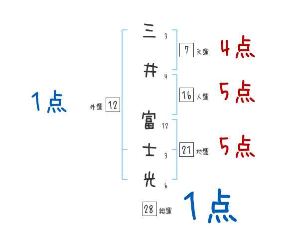 天運![]() | 三井富士光さんの天運は7画の4つ星!強い意志や信念を持ち独立心が強い。自立する。 家系が持つ宿命的な運勢を表します。祖先から受け継いだ苗字ですので自分の力が及びません。家柄を象徴します。 |