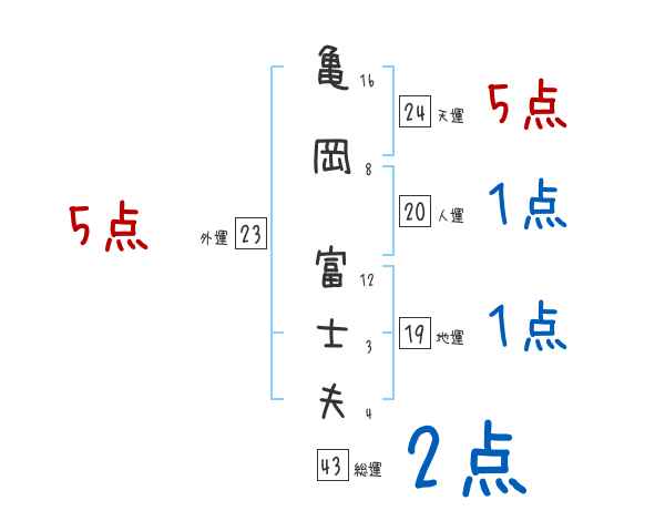 亀岡富士夫さんの画数の鑑定結果