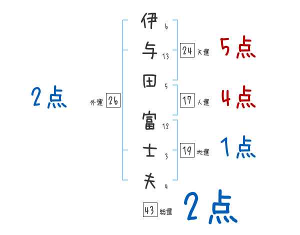 伊与田富士夫さんの画数の鑑定結果